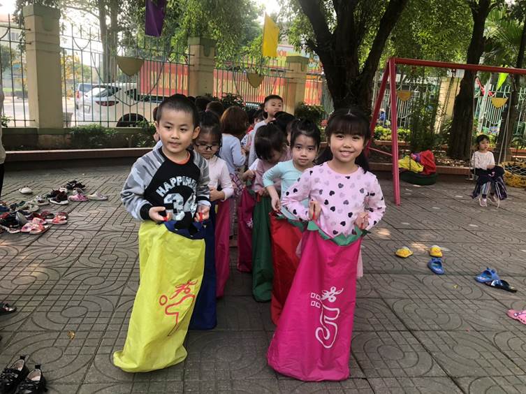 Hình ảnh trẻ chơi trò chơi nhảy bao bố