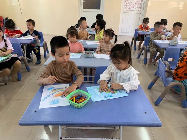 Lớp học Bé sáng tạo. Các con được rèn luyện sự khéo léo của đôi bàn tay, rèn thói quen làm việc có mục đích. Hơn nữa còn giúp trẻ hình thành lòng yêu thiên nhiên, yêu cuộc sống và yêu nghệ thuật.