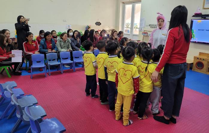Ngày 02 tháng 12 năm 2022, Lớp MGN B4 lên tiết kiến tập tiết LQVH - Truyện "Cáo, Thỏ và Gà Trống" là một trong những tiết dạy đat giải cao trong hội thi GVG cấp trường. Về dự kiến tập có đại diện Ban giám hiệu trường, các giáo viên trong trường và đại diện phụ huynh các lớp. Với loại tiết trẻ chưa biết, giáo viên đã vào vai Thỏ kể chuyện rất biểu cảm và sinh động thu hút trẻ vào hoạt động, trẻ tỏ ra rất chăm chú, hứng thú và vui vẻ! Qua câu chuyện, giáo dục trẻ bài học về sự tốt bụng, dũng cảm, giúp đỡ bạn khi gặp khó khăn. Kết thúc tiết dạy các con được xem vở kịch rối tay: " Cáo, Thỏ và Gà Trống" bạn nào cũng thích thú và đầy hứng khởi. Sau đây là một số hình ảnh buổi kiến tập: