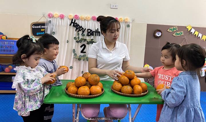 Qua thời gian hoạt động học, yêu cầu kiến thức về nhận biết tập nói quả cam được các con rất hào hứng tham gia tiết học.