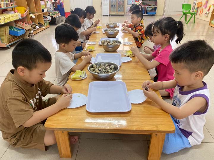 Sau đây là hình ảnh Bóc trứng của các con lớp B2#Mầm_non_Ánh Sao