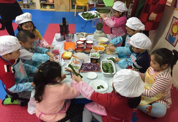 Hôm nay, các bé lớp MGL A4 cùng trổ tài làm các món ăn như : Xôi, bánh trôi ngũ sắc và nước ép trái cây sắc màu. Dưới sự hướng dẫn của 2 cô giáo Đỗ Huế và Minh Thu các bé đã biết được quy trình làm bánh trôi . Từ cách tạo màu cho bột được lấy từ rau củ quả: màu xanh được lấy từ lá nếp, màu hồng lấy từ củ dền, màu vàng từ bí ngô và màu tím từ bắp cải tím…Bé còn biết xay, ép lấy nước màu trộn vào bột và nặn được những viên bánh trôi với nhiều màu sắc đẹp và hấp dẫn. Bé cũng được trực tiếp trộn gạo với gấc để lấy màu đỏ cho xôi, Xay lá nếp để lấy màu xanh, xay củ dền lấy màu hồng, …và tạo được xôi nhiều màu sắc trông thật bắt mắt. Để có được những cốc nước quả ngon, hấp dẫn với nhiều màu sắc, bé đã được cô hướng dẫn thái quả thành miếng và dùng máy ép, ép lấy nước và bé đã được những cốc nước quả nhiều màu sắc và ngon nữa. Cuối buổi học, nhờ có sự nỗ lực cố gắng của bản thân cộng thêm sự hỗ trợ của các bác cấp dưỡng, các con có được một bữa tiệc với những món ăn ngon và những cốc nước ép quả nhiều màu sắc. Giờ học kết thúc, các con tíu tít liên hoan cùng bạn với những nụ cười tươi của các con, niềm vui ánh lên từ đôi mắt khi mà các con được thưởng thức bữa tiệc mà do chính đôi bàn tay mình làm ra thật là thú vị phải không nào!