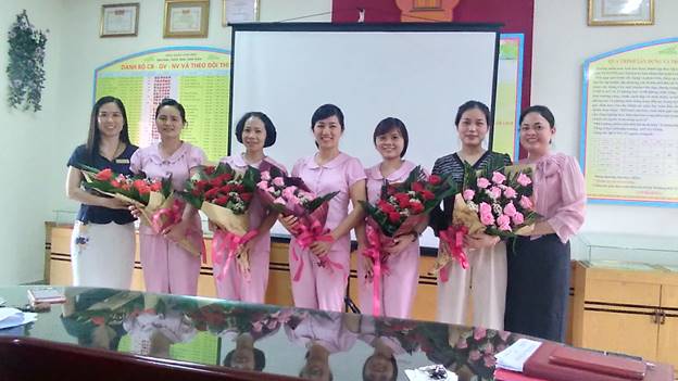Các đồng chí trong BGH và CĐ tặng hoa cho các CĐ viên sinh nhật.