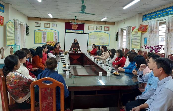 Phát biểu tại buổi gặp mặt, đồng chí Nguyễn Thị Quyên, Bí thư chi bộ, hiệu trưởng nhà trường đã gửi lời chúc tới toàn thể giáo viên, nhân viên trong trường, chúc năm mới sức khỏe, hạnh phúc, an khang thịnh vượng. Ngay sau đó, các đồng chí trong ban giám hiệu nhà trường đã mừng tuổi toàn thể các đồng chí giáo viên, nhân viên trong nhà trường.