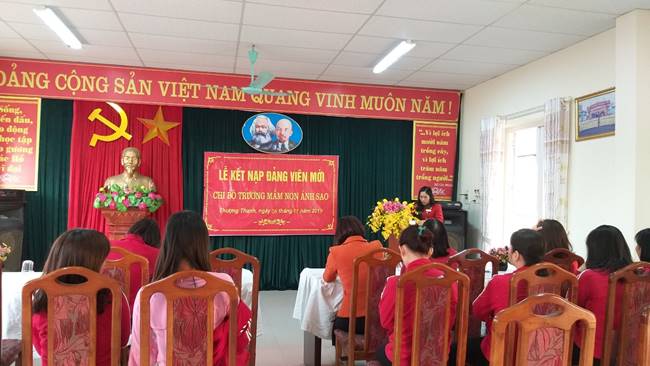 Chiều ngày 28/11/2019, được sự đồng ý của Đảng ủy phường Thượng Thanh, Chi bộ trường mầm non Ánh Sao đã tổ chức Lễ kết nạp đảng viên mới cho quần chúng Nguyễn thu Hà và quần chúng Đức Thị Minh Thu.