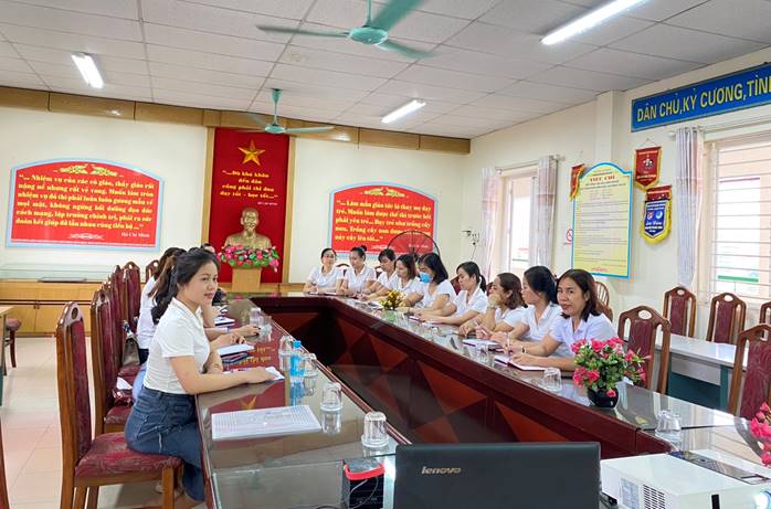 Điểm cầu trường mầm non Ánh Sao tiếp sóng đường truyền lớp bồi dưỡng chính trị hè