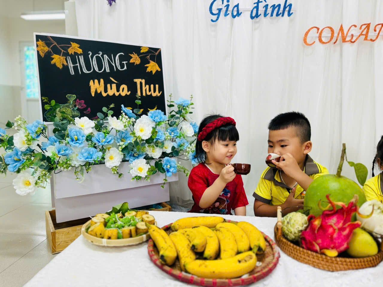 Các con cũng được thưởng thức và cảm nhận mùi hương thơm dịu của gói cốm được. Những chiếc lá rụng cũng trở lên sinh động lạ thường sau khi được hoá thân thành những chú cá bơi lội trong tiết học tạo hình. Thật tuyệt vời khi tuổi thơ của các con được tô điểm bởi sắc màu của những bài học sinh động, thú vị và ý nghĩa này!