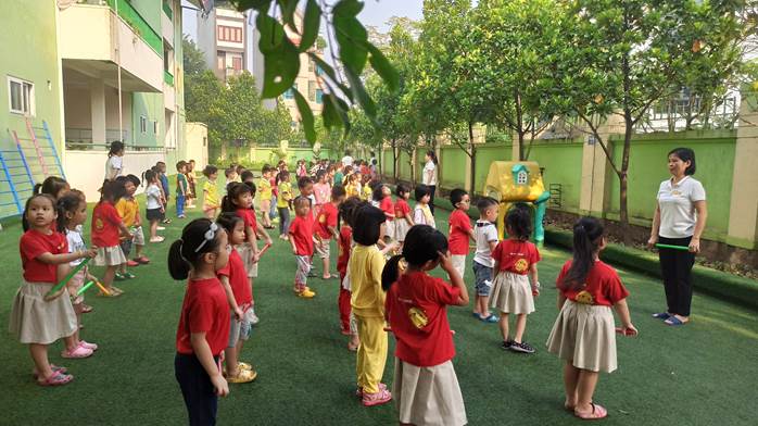 Giờ tập thể dục sáng của các bé lớp MGL A1