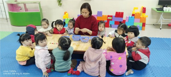 Tập ảnh : Lớp D1 xâu vòng tặng Bà tặng Mẹ ngày 8-3