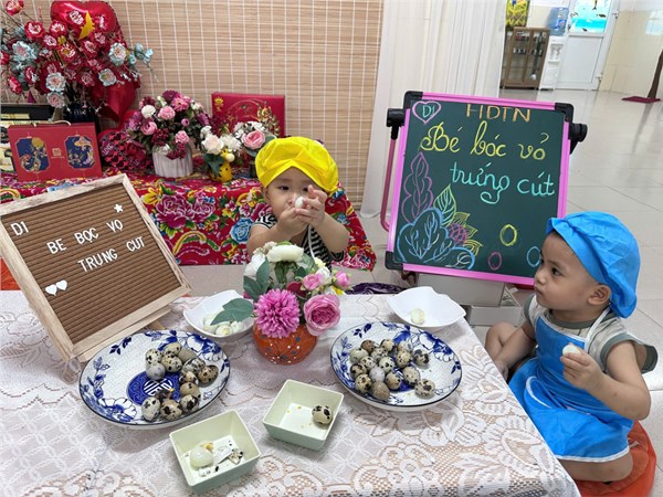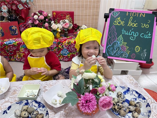 Tập ảnh : Tháng 9: Hoạt động trải nghiệm bóc vỏ trứng cút của các bé lớp D1