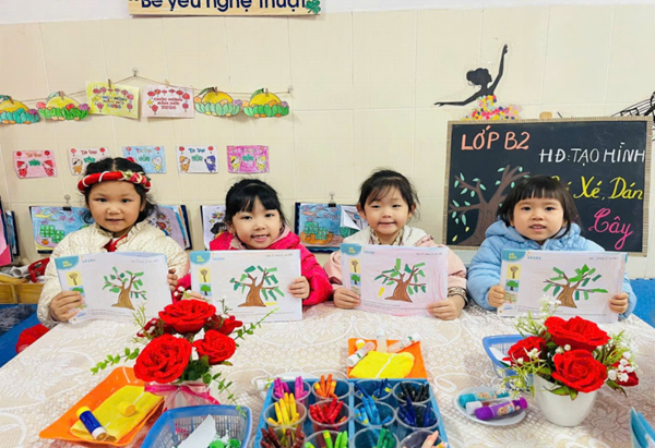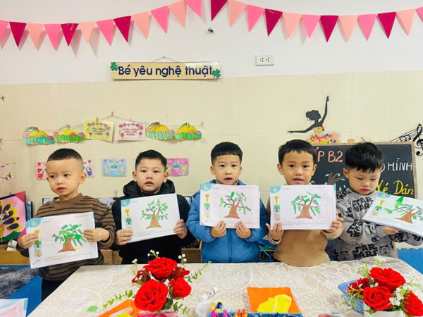 Tập ảnh : Thư viện ảnh T3 Lop B2 tham gia hoạt động tạo hình :Dán lá cây