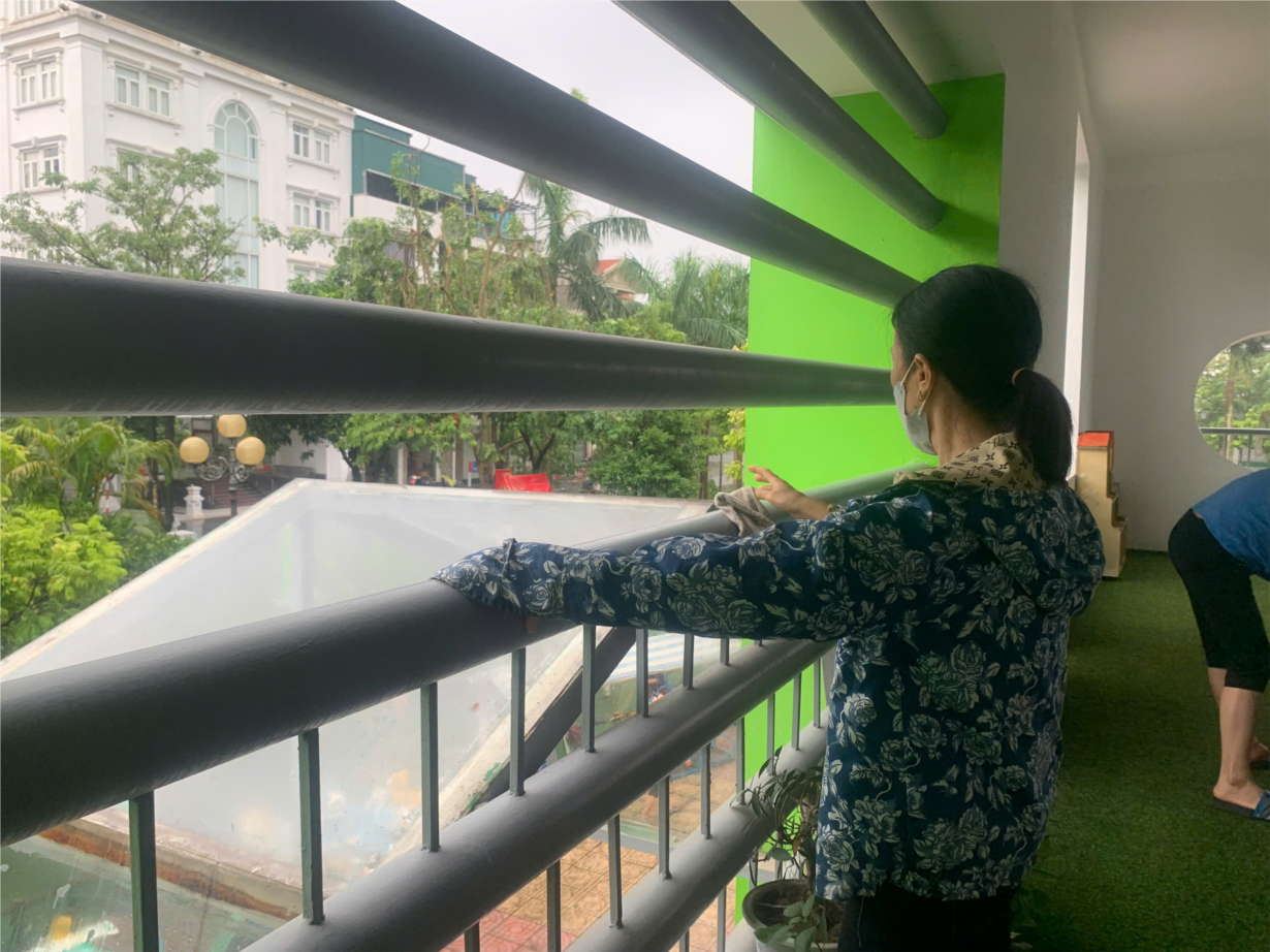 Các cô giáo lớp C4 lao động chuẩn bị đón học sinh trở lại trường sau bão YAGI
