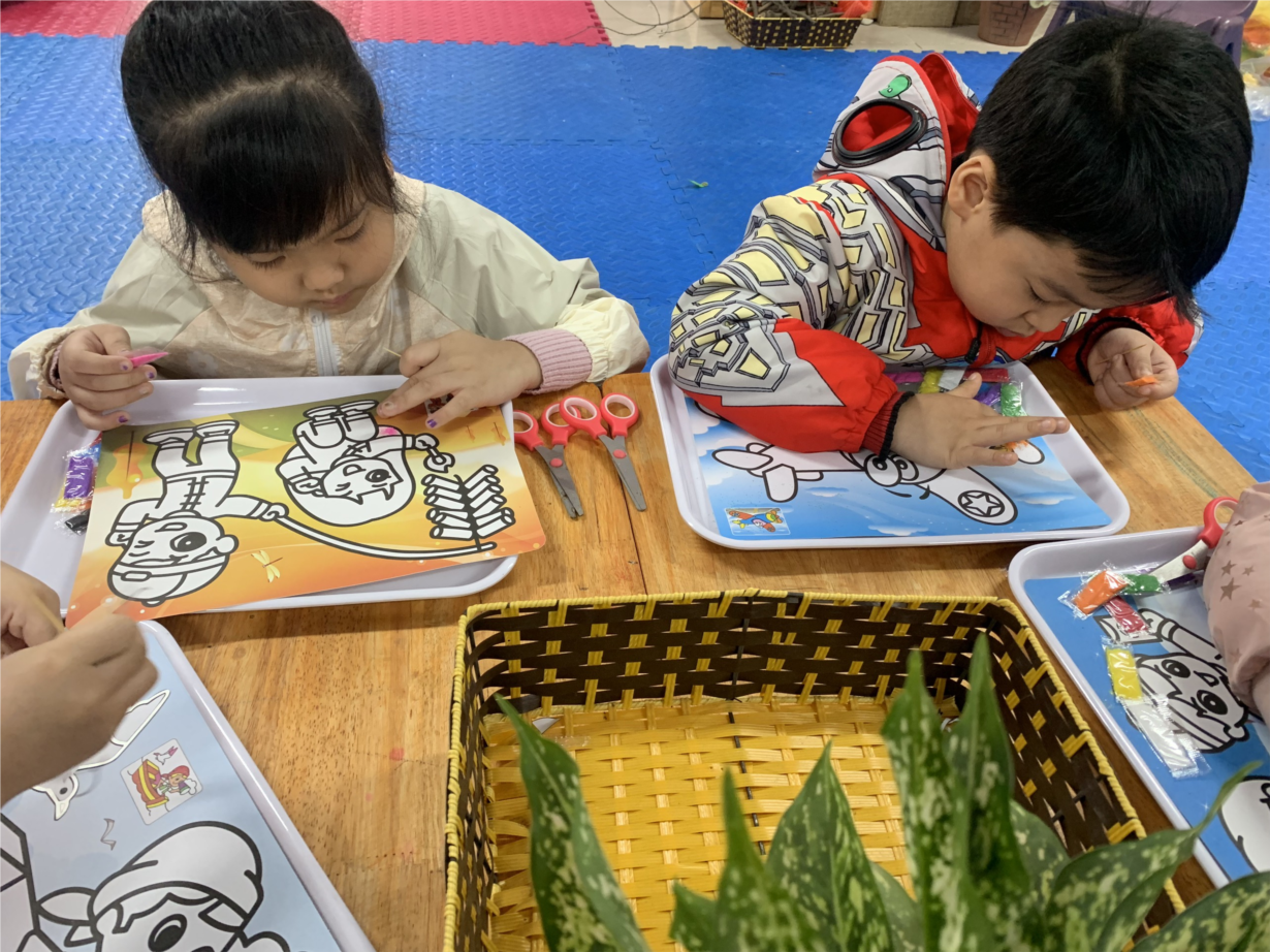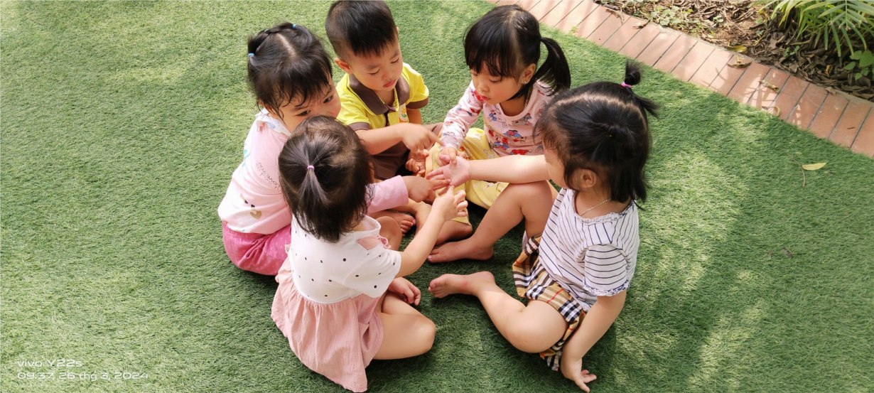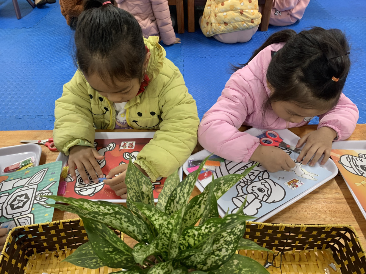Hình ảnh các bé lớp MGL A4 làm tranh cát
