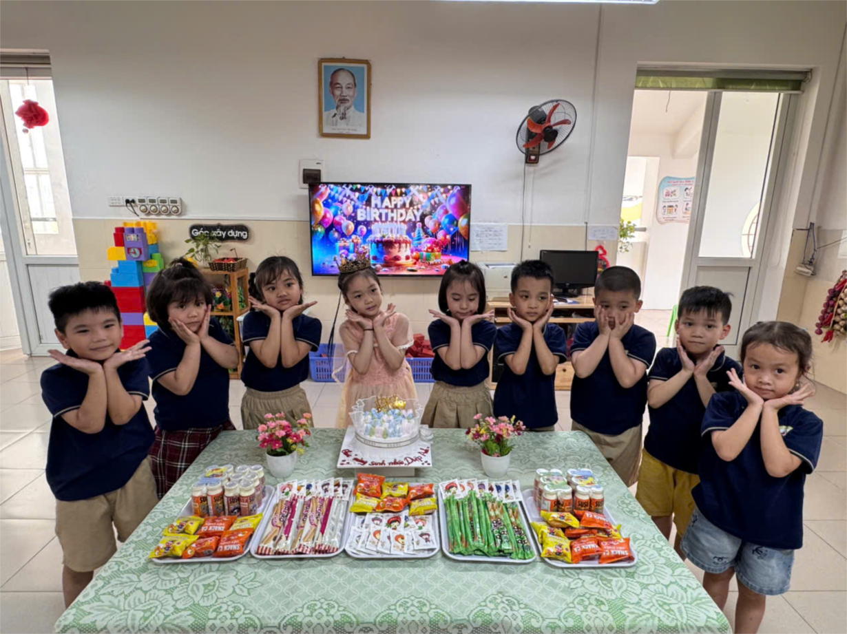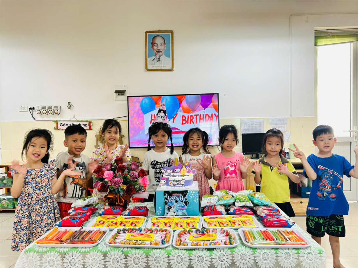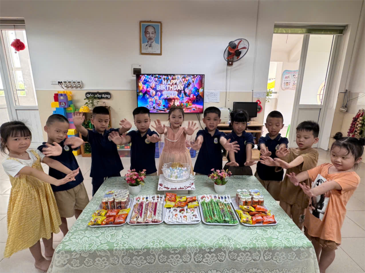 Các bạn nhỏ lớp A2 chúc mừng sn bạn Diệu Linh