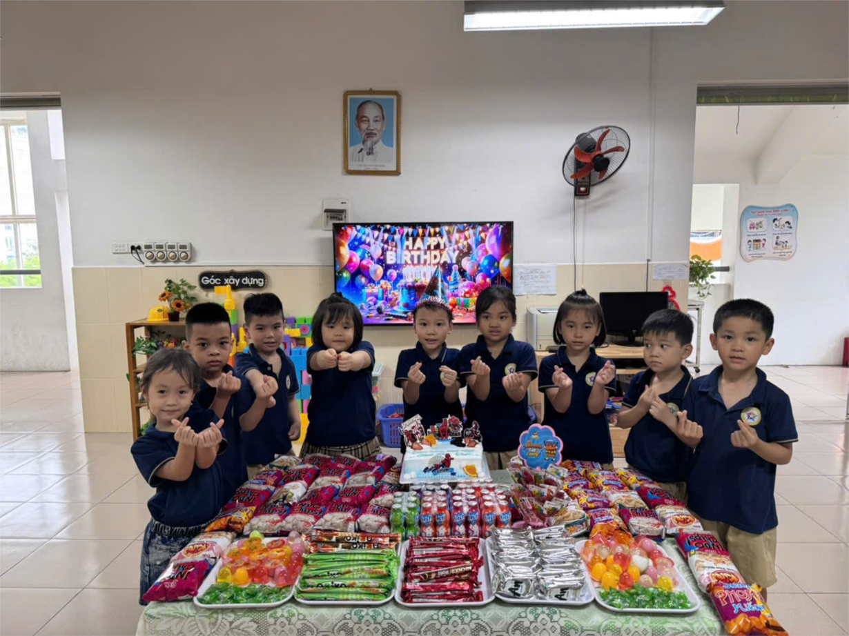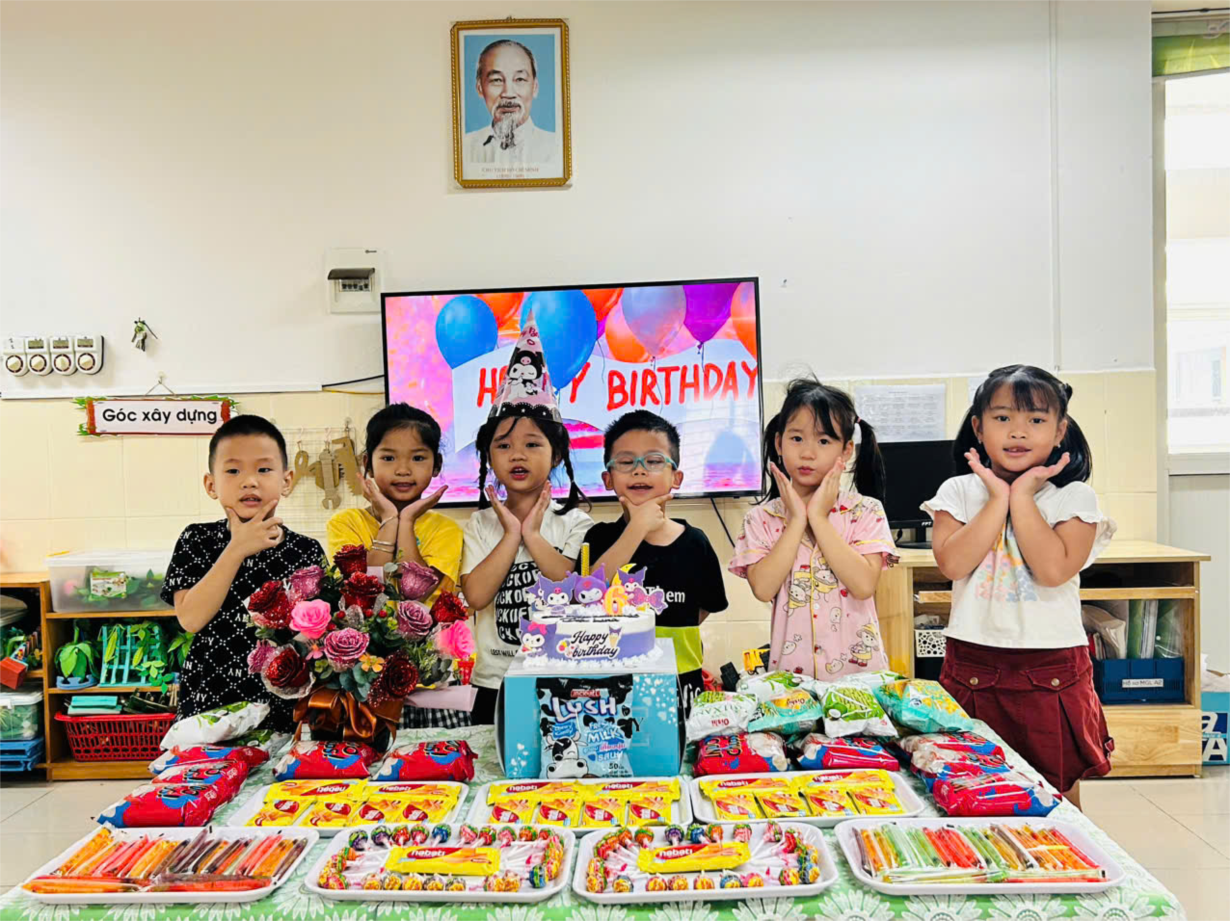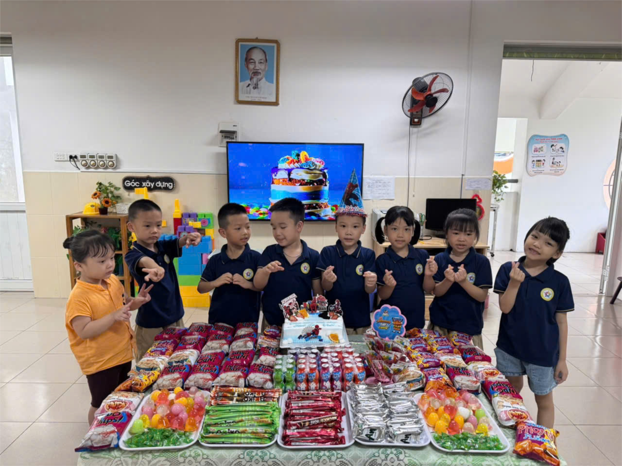 Các bạn nhỏ lớp A2 chúc mừng sn bạn Diệu Linh