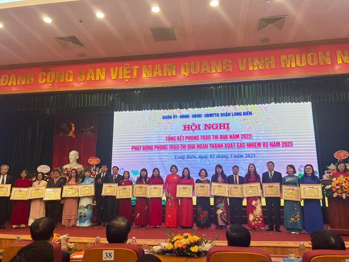 Sáng nay ngày 01/03/2023, đồng chí NGuyễn Thị Quyên - BTCB, Hiệu trưởng nhà trường đã tham dự Hội nghị tổng kết phong trào thi đua hoàn thành xuất sắc nhiệm vụ năm 2022. Và đồng chí Quyên đã rất vinh dự được thay mặt nhà trường lên nhận giấy khen đơn vị đạt danh hiệu "Cơ quan, Đơn vị, doanh nghiệp đạt chuẩn văn hóa tiêu biểu" năm 2022 của Chủ tịch UBND quận Long Biên. Đây là một vinh dự và tự hào mà tập thể nhà trường đã đạt được trong năm 2022. Hy vọng trong năm 2023 nhà trường sẽ cố gắng phấn đấu hơn nữa để đạt được thêm nhiều thành tích mới và không phụ lòng tin của các cấp lãnh đạo, của phụ huynh và học sinh thân yêu. Sau đậy là một số hình ảnh của hội nghị: