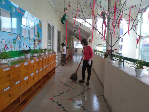 Bên cạnh việc tiếp tục tăng cường tuyên truyền cho phụ huynh thực hiện tốt các biện pháp phòng, chống dịch bệnh, trong đó có việc đeo khẩu trang thường xuyên, vệ sinh cá nhân, rửa tay bằng xà phòng... sẵn sàng mọi điều kiện phòng chống dịch tốt nhất cho đến khi học sinh quay trở lại trường học. Lớp MGL A1, A2, A3 tiếp tục dọn dẹp, tổng vệ sinh môi trường lớp học, hành lang, ...đảm bảo giữ cho môi trường lớp luôn sáng, xanh, sạch,đẹp và an toàn.