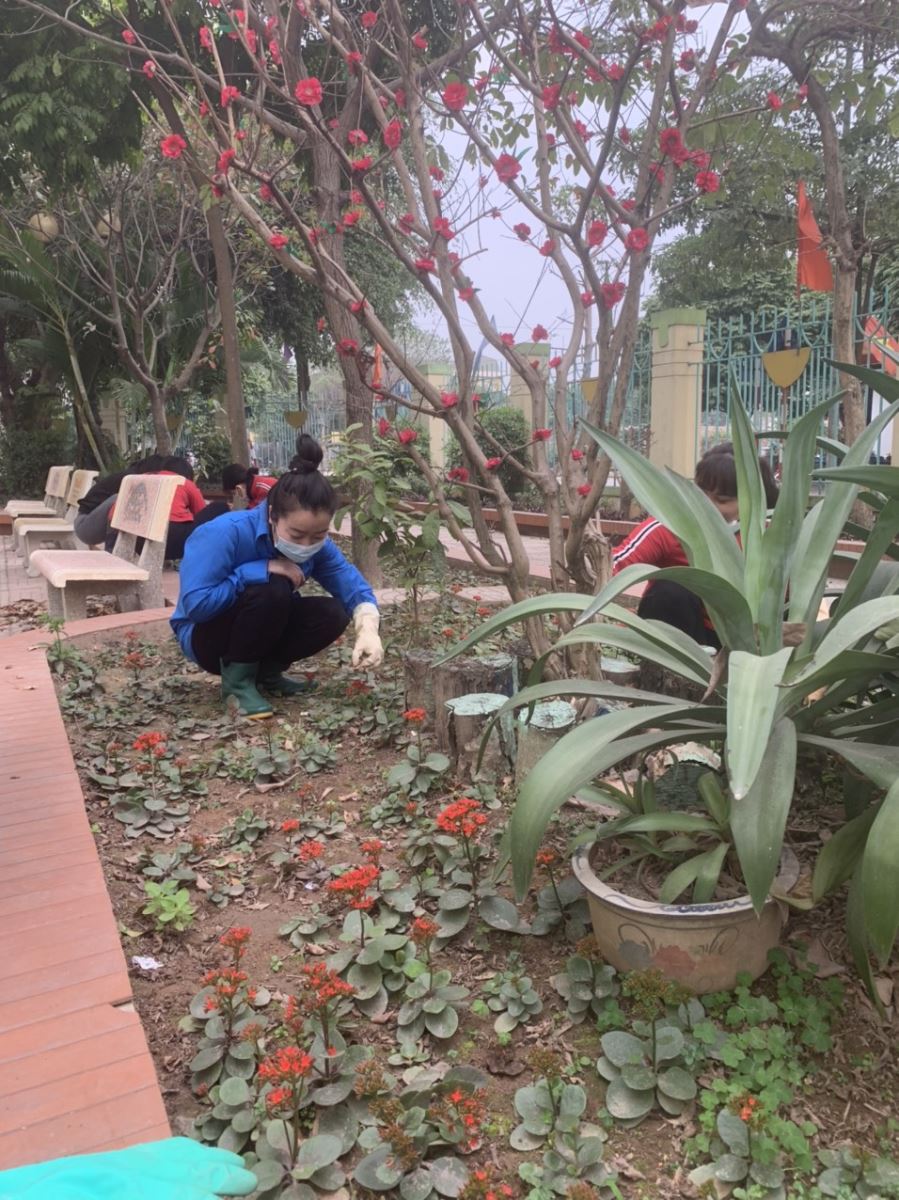Thực hiện công văn số 557/SGDĐT - của Sở Giáo dục và Đào tạo Hà Nội về việc chuẩn bị các điều kiện để đảm bảo an toàn khi học sinh đi học trở lại. Đoàn thanh niên đã phối kết hợp với CBGVNV nhà trường tổng vệ sinh lao động toàn trường.